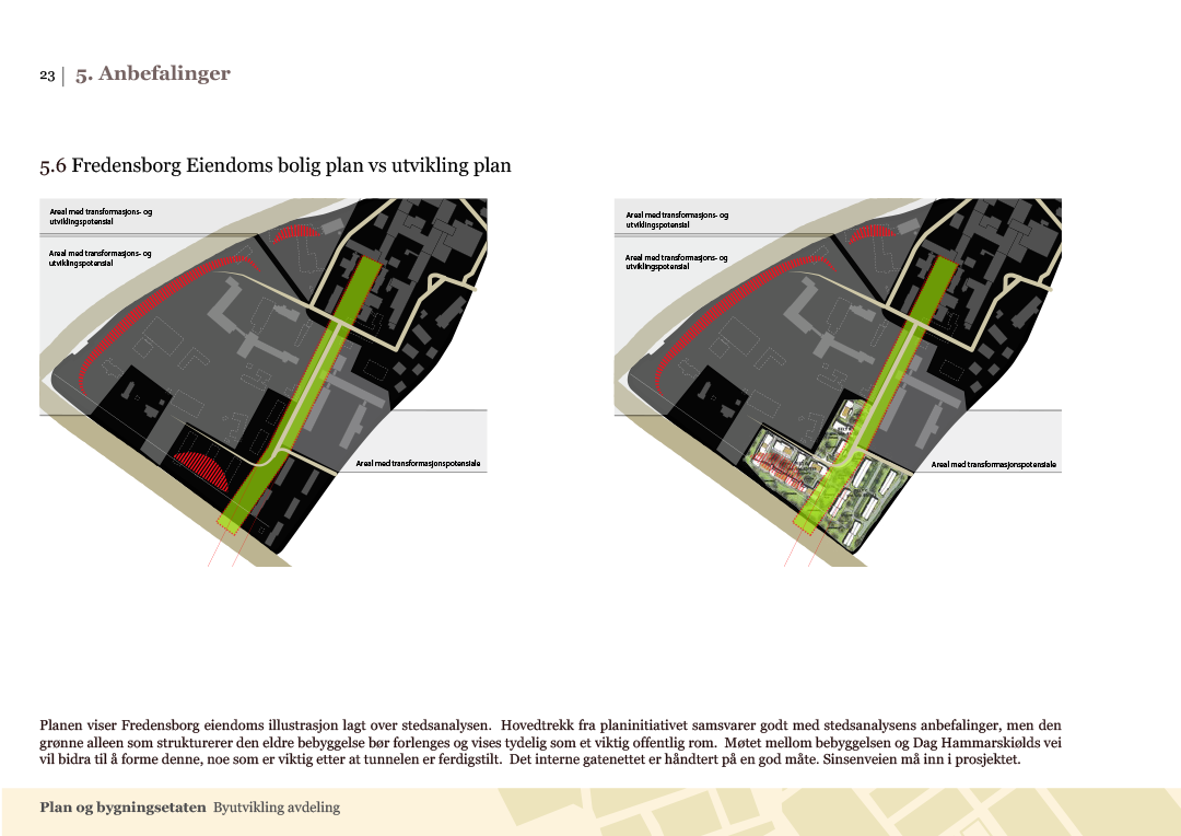 Gjennomførte en analyse som beskrev historien og forholdene for utvikling, inkluderte anbefalinger. Arbeidsgiver: Plan- og bygningsetaten, byutvikling avdeling.